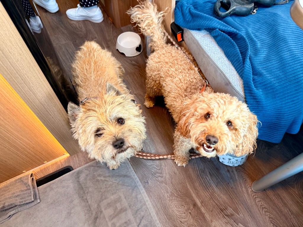 Derfor kørte vi de 6,8 km over til Trelde Sande, hvor man kan holde helt nede ved vandet – og bådelauget havde bygget et skønt bål. Dem der havde trodset vejrguderne og havde fællesspisning i læ bag skuret skævede godt nok lidt mærkeligt over mod os, mens de skuttede sig forgæves mod vind og vejr i 11 lags tøj, mens vores champagne problemer begrænsede sig til om varmen skulle stå på 21 eller 22 grader.