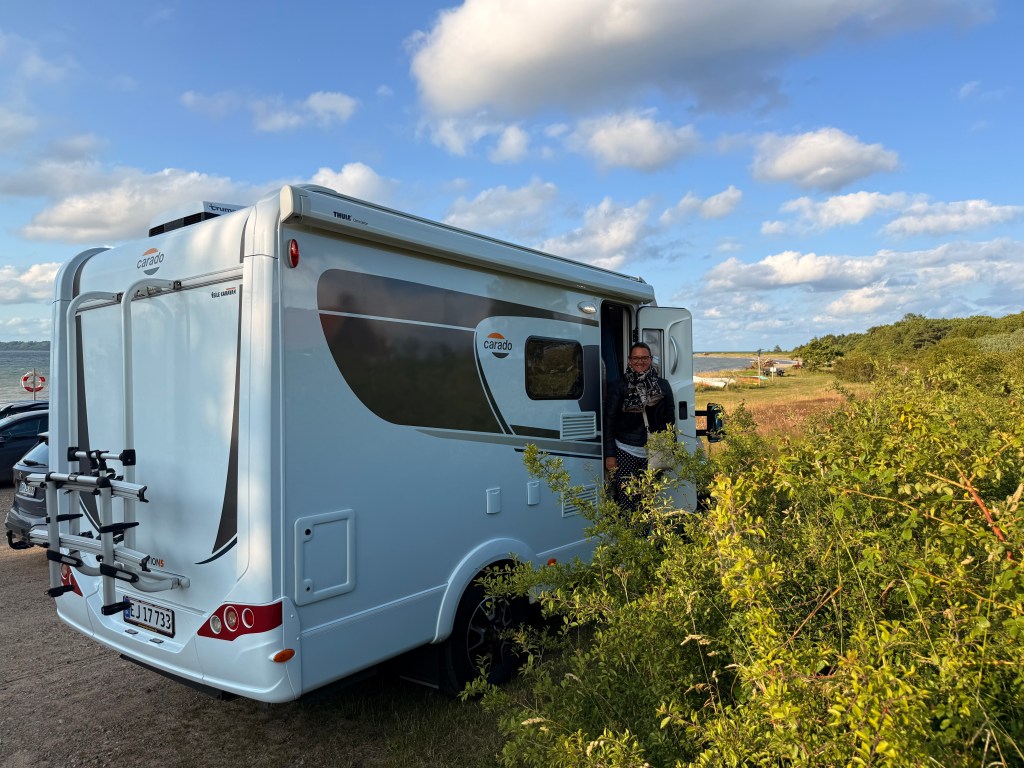 Den stod jo bare i indkørslen og ventede, da vi kom hjem fra arbejde, og når nu jordbærrene allerede var plukket, og vejret ikke i top 10 over bedste Skt. Hans, så var det jo oplagt at tilbringe aftenen med udsigt til hav og skt. Hans bål.