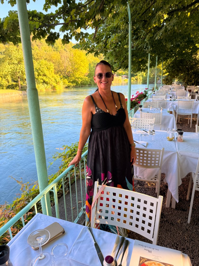 Min smukke søde kone kan I ikke få til bords, men stedet og atmosfæren er for alle, der bestiller bord ved flodbreden.