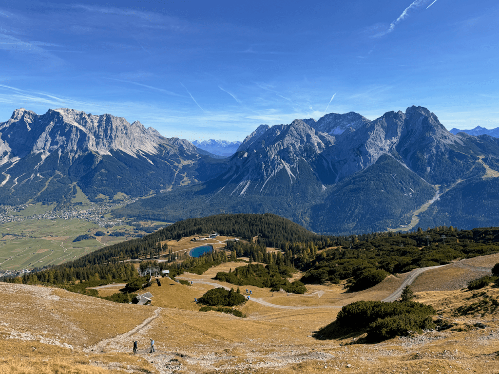 Man skal lige gennem en lille park for enden af campingpladsen og så er man stort set ved bjergbanen, der tager een fra Lermoos 1000m højde og i to etaper op til toppen af Grubigstein, som om byder på en helt fantastisk udsigt, og masser af aktiviteter både sommer (vandre, cykel, paragliding (for de modige), og vinter (ski).